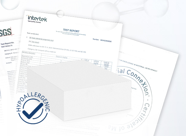 เมมโมรี่โฟมของเราได้ผ่านการทดสอบจากสถาบันชั้นนำ อาทิ Intertek , SGS ไม่มีสารที่เป็นอันตราย ไม่ก่อให้เกิดอาการภูมิแพ้ ทั้งยังได้รับการรับรองวัตถุดิบจากสถาบัน Material Connexion ซึ่งเป็นแหล่งรวมวัตถุดิบด้านนวัตกรรมกว่า 8,000 รายการ มั่นใจได้ว่าคุณได้วัสดุเมมโมรี่โฟมแท้ 100%